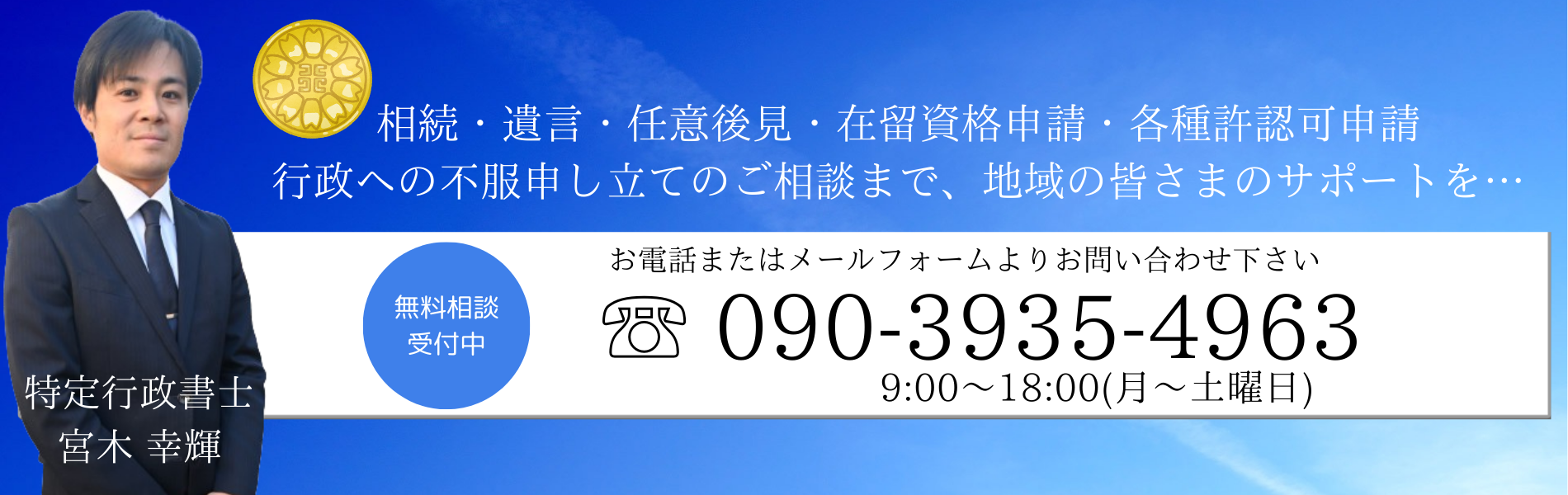 名古屋市中川区の宮木行政書士事務所では『相続手続き』『遺言書作成サポート』『終活サポート』等のご家族に関わる法律関係や在留資格認定申請(COE Application)を中心に業務をおこなっています。